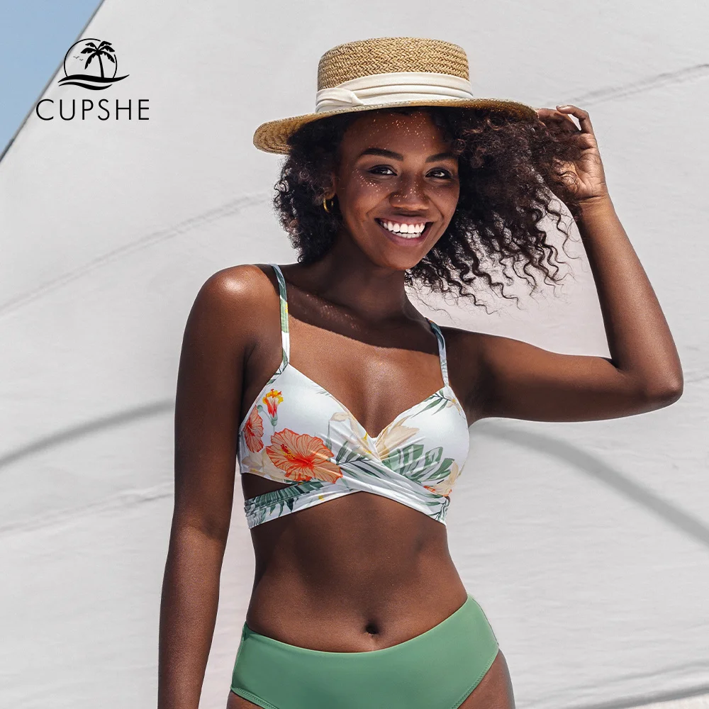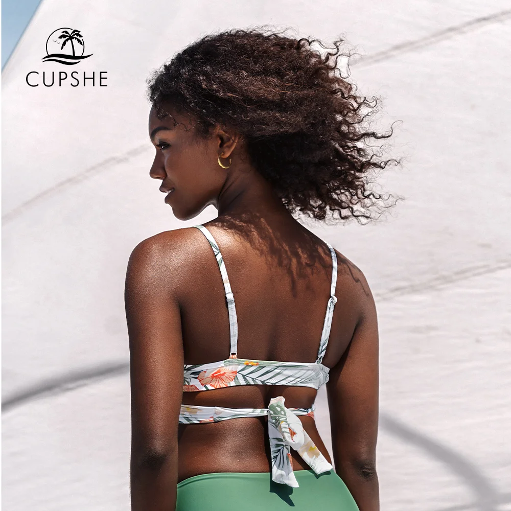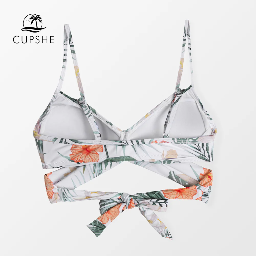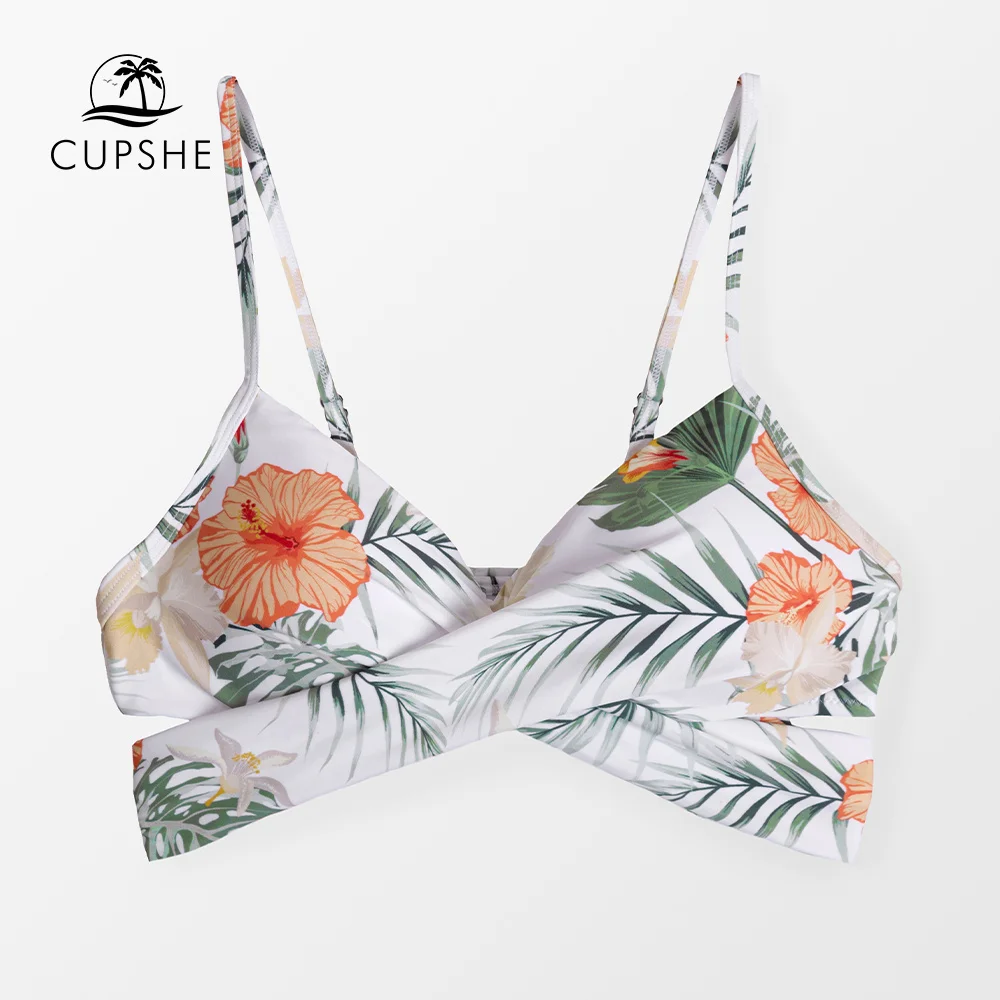 CUPSHE пуш-ап, бикини с завязками на спине, Топ для женщин, сексуальный белый цветочный бюстгальтер, топ 2022, Раздельный купальник для девочек, Купальный бюстгальтер, Топ