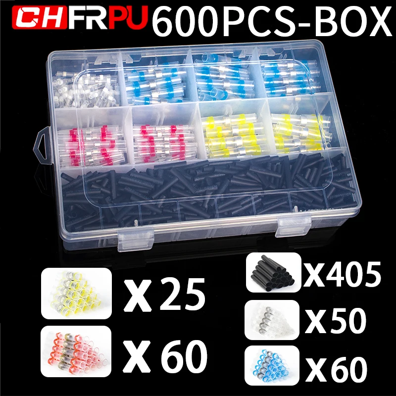 Герметичный водонепроницаемый термоусадочный соединитель для сварочных проводов, 600 шт. в коробке, паяльная втулка, комплект клемм для проводов, морская изоляция