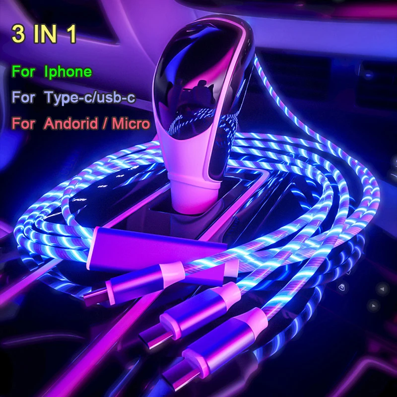 Цветной светящийся светодиодный USB-кабель 3 в 1, зарядный кабель M...