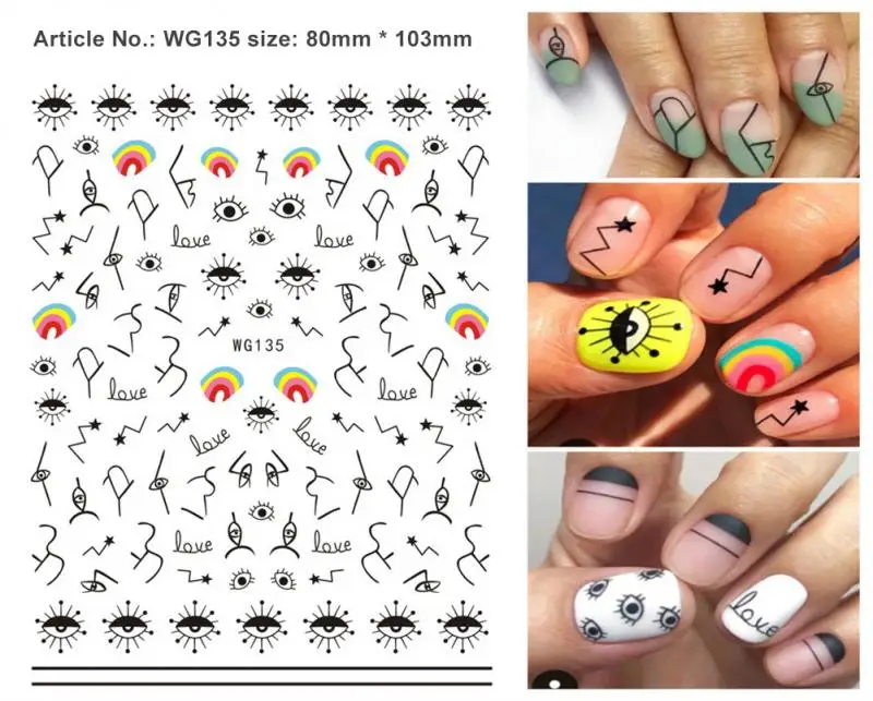 Наклейки для ногтей с абстрактными линиями, дизайн сглаза, Слайдеры...