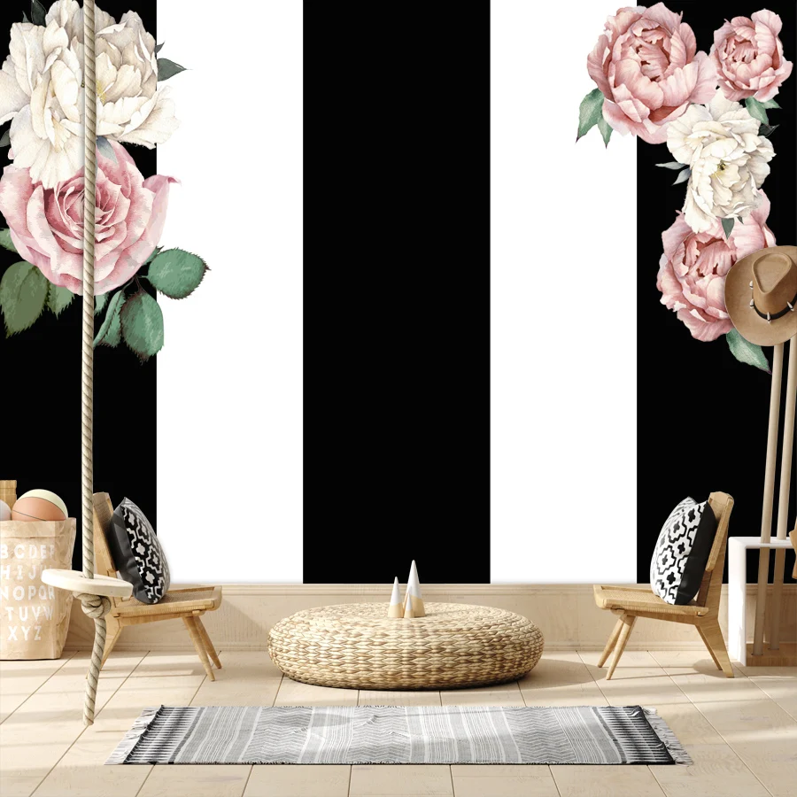 Пользовательская 3d настенная бумага любого размера s черная белая ...