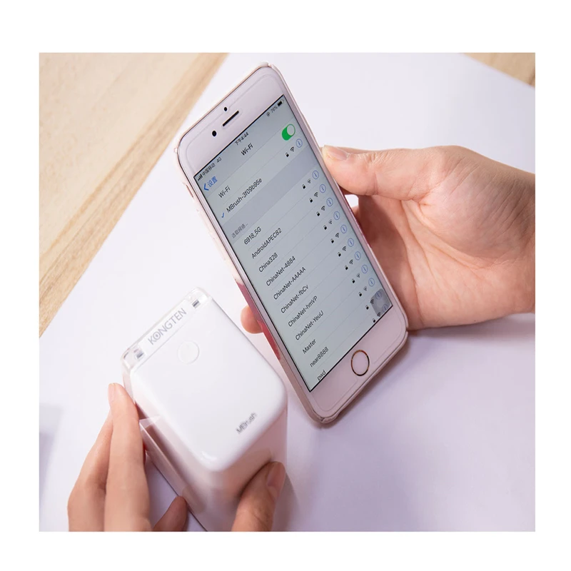 Подключите мобильный телефон или ноутбук к принтеру Kongten по Wifi.Используйте мобильные и другие устройства для поиска WiFi, найдите mbrush-XXXX, затем подключите. Начальный пароль 12345678.