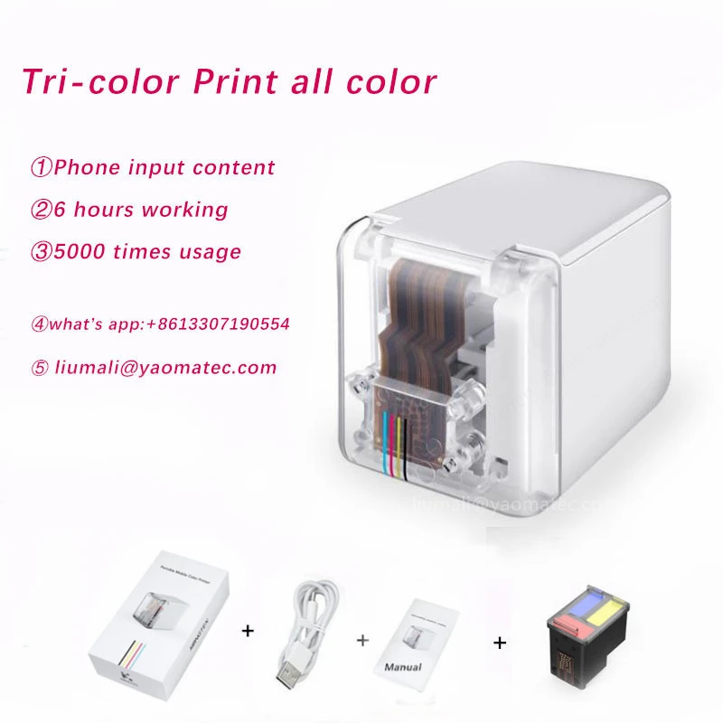 Портативный мини-принтер Bluetooth Мобильный цветной Портативный Wifi принтер ручной струйный чернильный картридж тату логотип