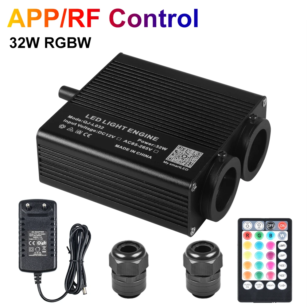 32 Вт Светодиодный драйвер волоконно-оптического двигателя RGBW с двойной головкой Bluetooth app & 28key RF пульт дистанционного управления для всех видов волоконно-оптического s