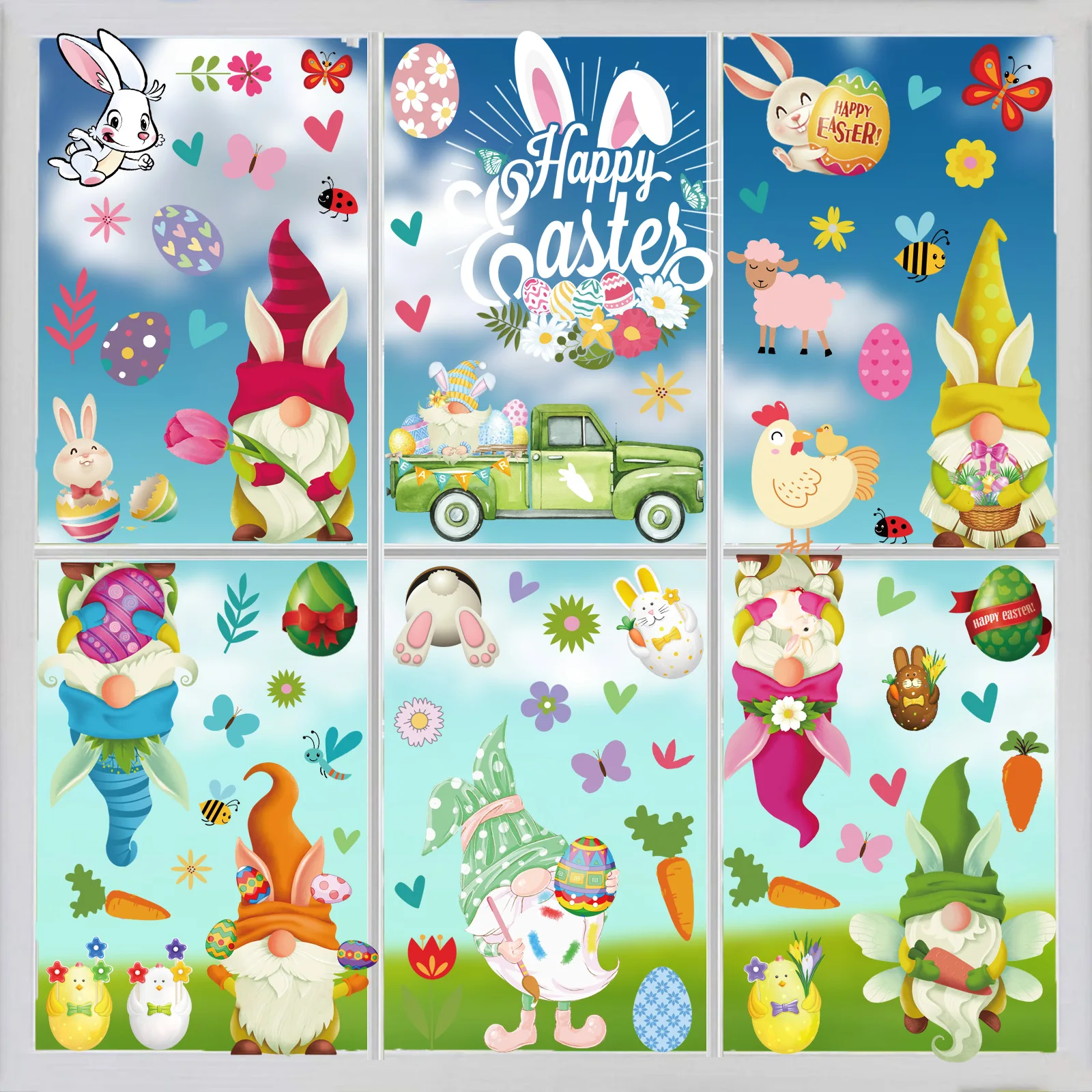9 шт., пасхальные наклейки на окно в виде карликовых яиц