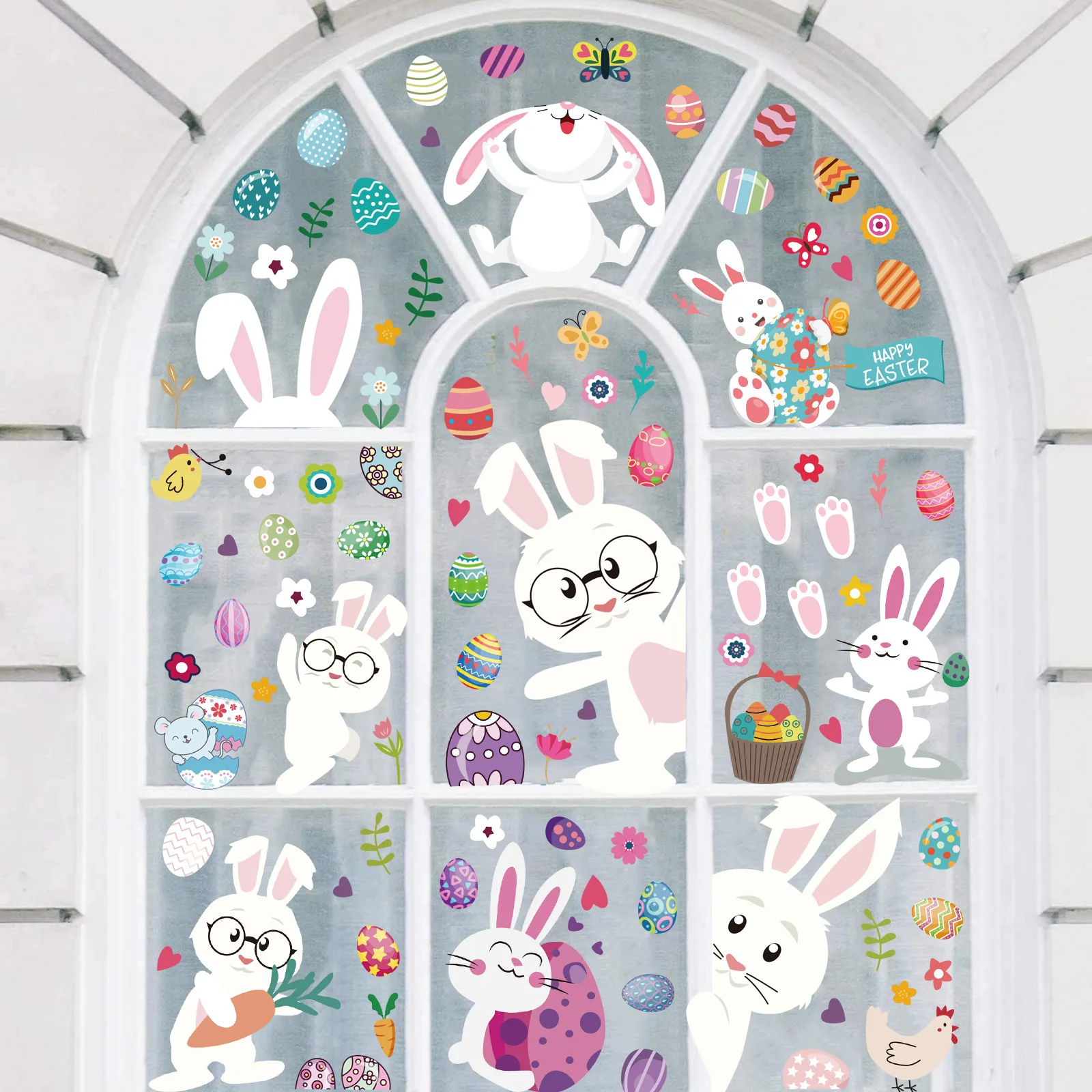 9 листов, пасхальные наклейки на окна, стикеры в виде мультяшных кр...
