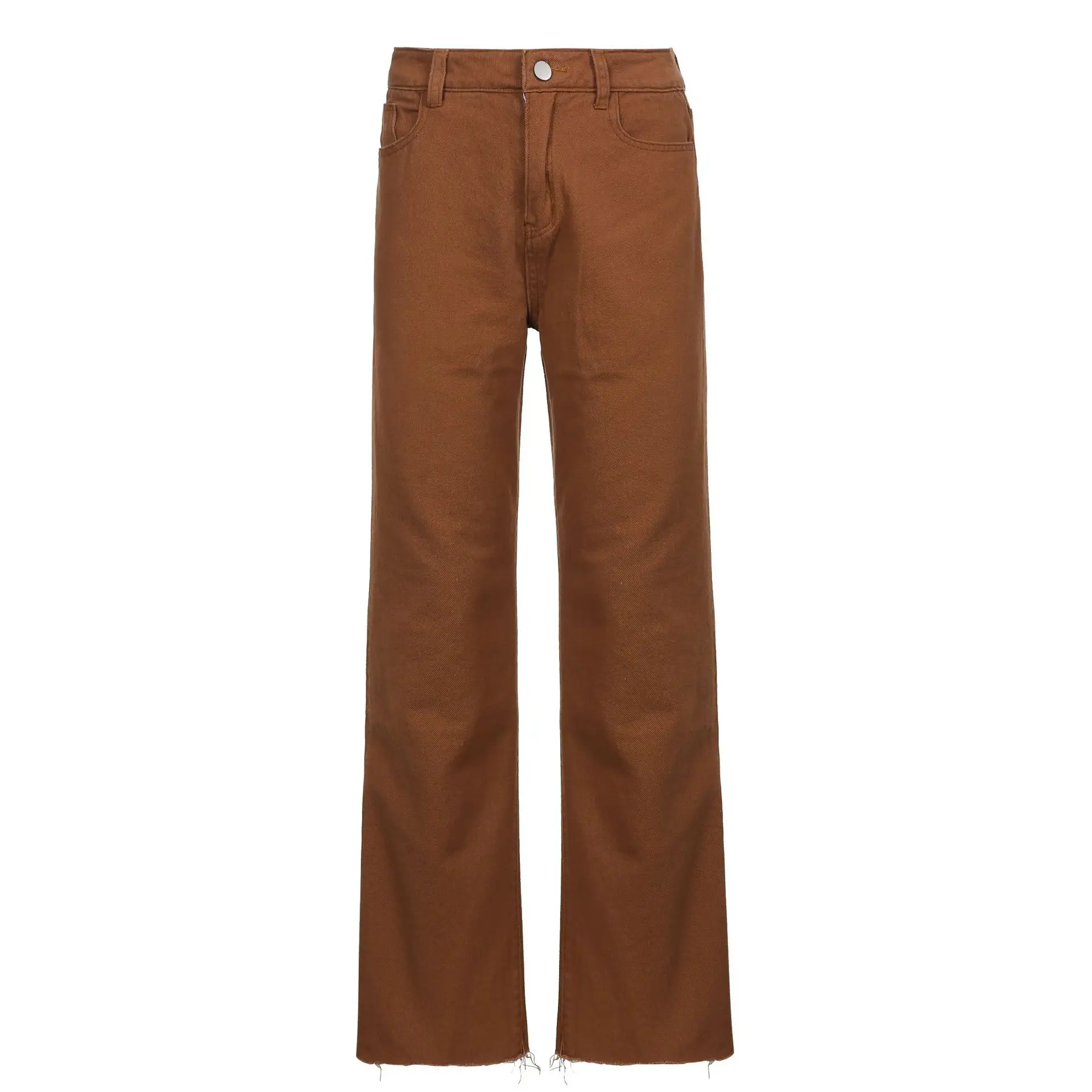 Однотонные джинсы Y2K, женские повседневные брюки-карго с высокой т...
