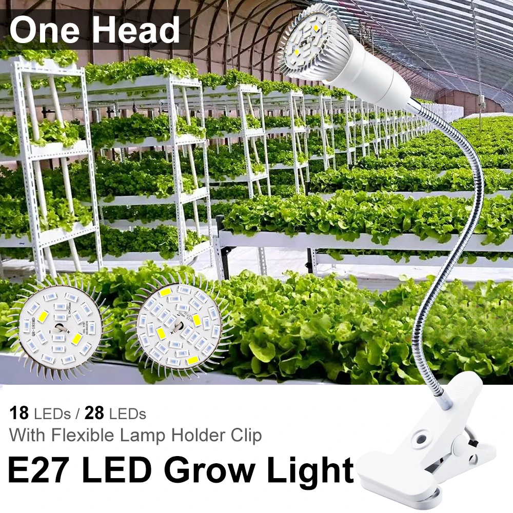 Светодиодная настольная фитолампа с зажимом, 220 В светодиодный светодиодсветильник лампа для выращивания растений, 18 Вт, 28 Вт, лампы полного спектра для выращивания растений в теплице, гидропонная система, коробка для выращивания