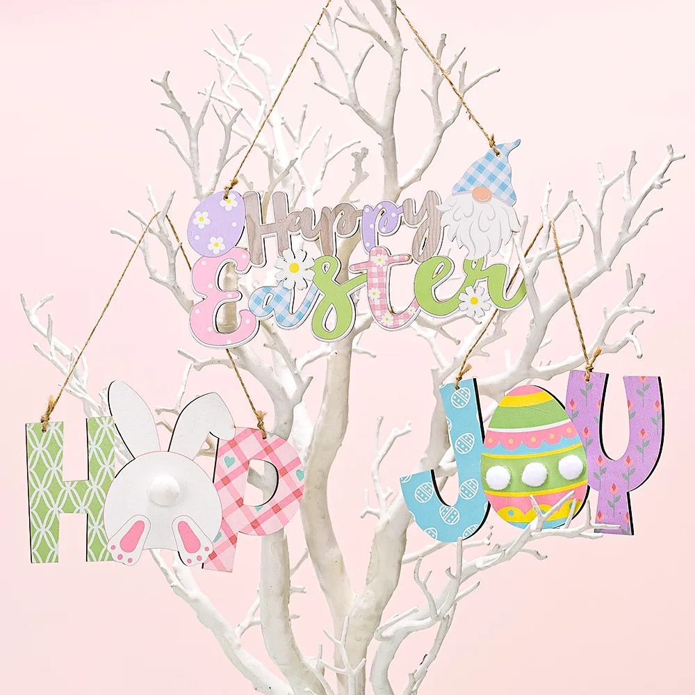 95AA счастливая Пасхальная дверь подвесной знак деревянный хоп Joy ...