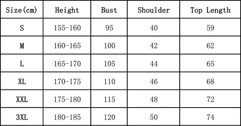 Таблица размеров: