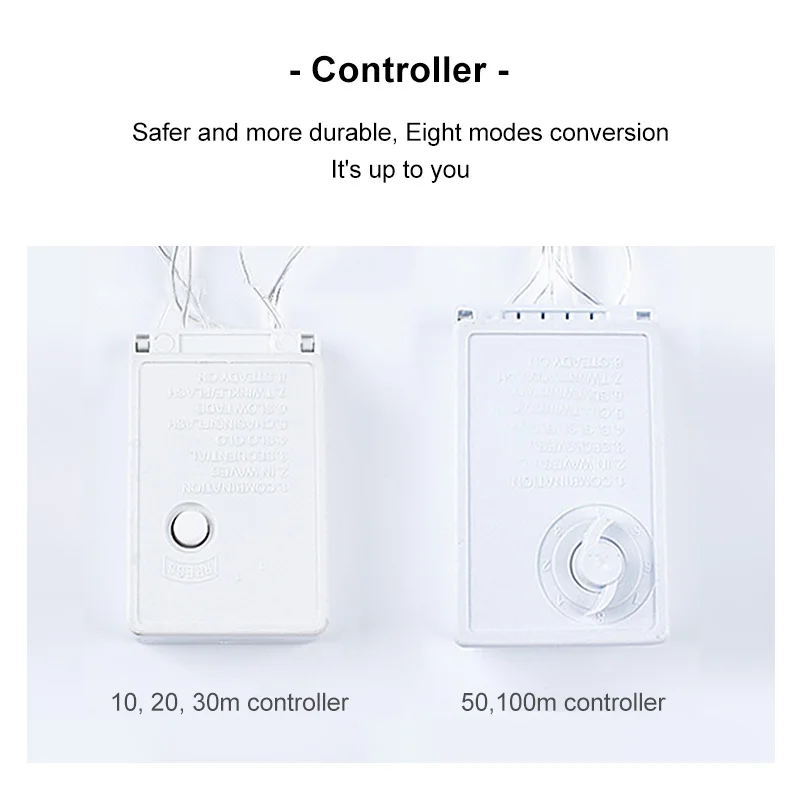 • Напряжение продукта: 220 В�� 5 размеров: 10/20/30/50/100 мУровень водонепроницаемости: IP44Метод зарядки: европейский стандарт питанияРежим мигания: 8 функций мигания (есть инструкции на Контроллере)