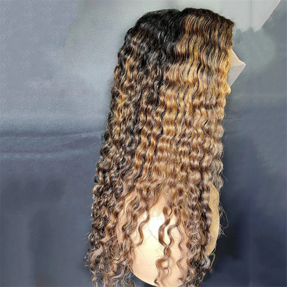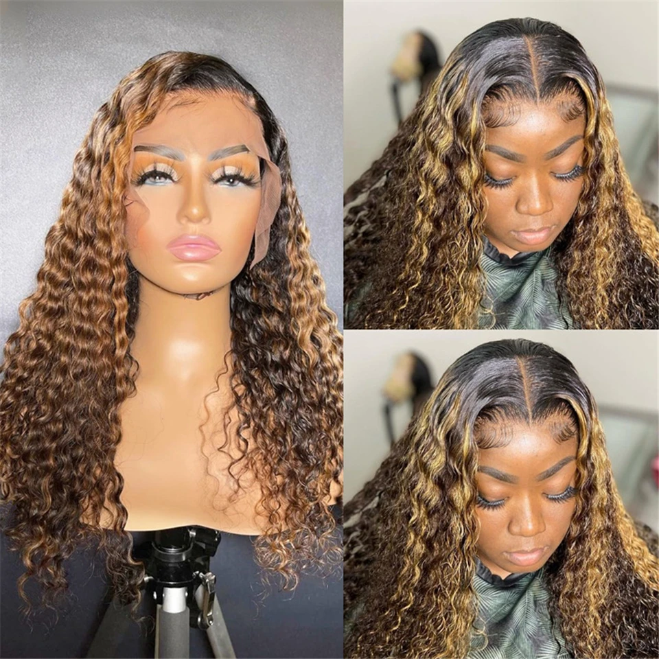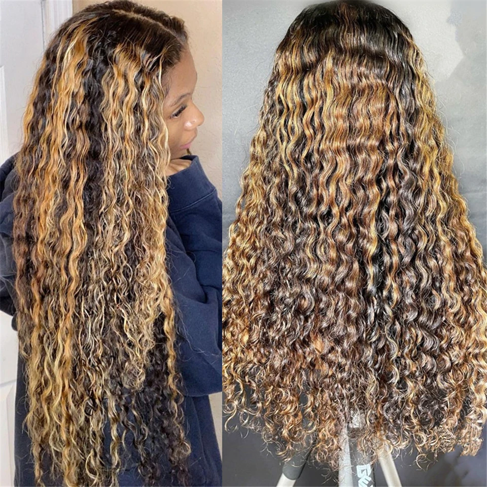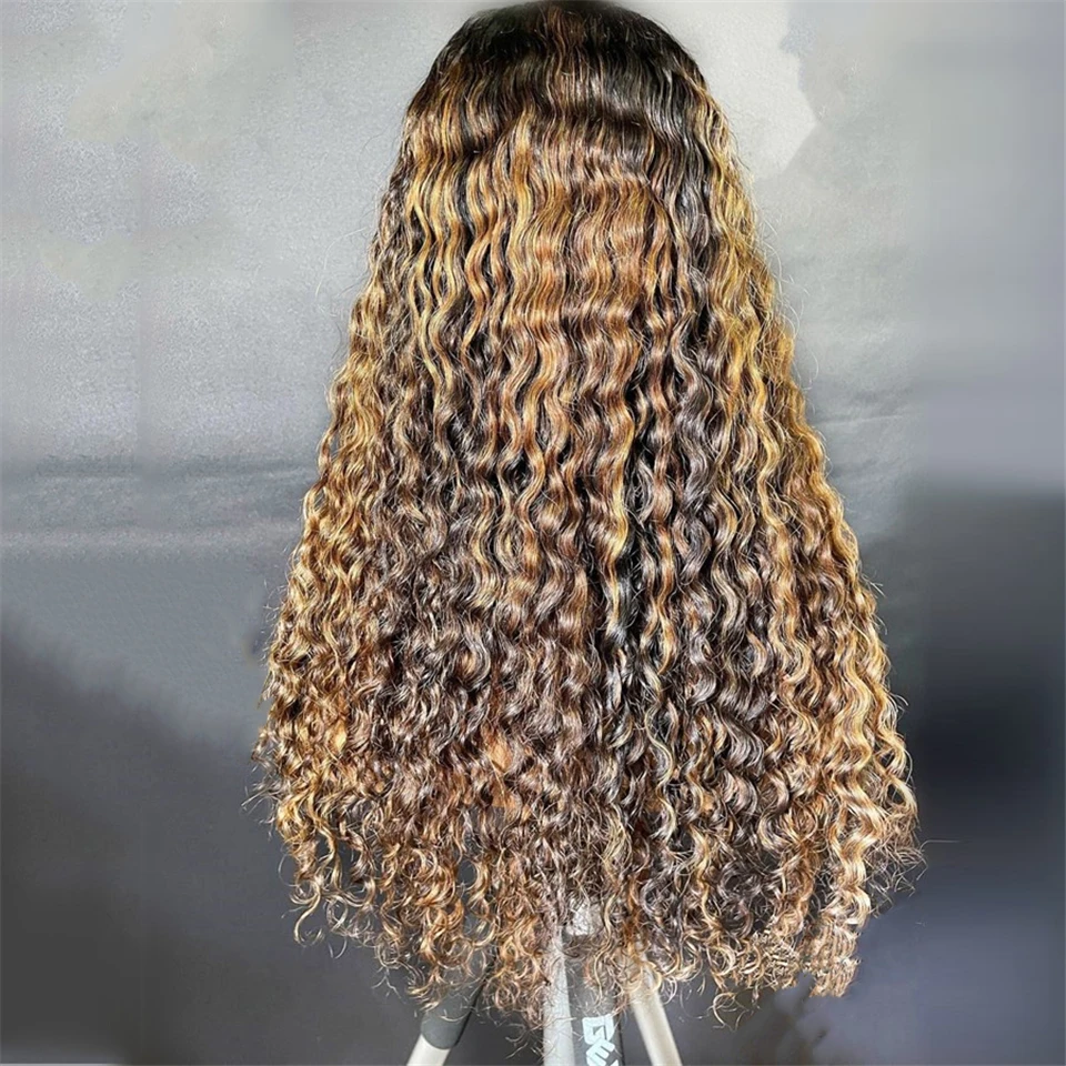 Кудрявый парик, бразильский Реми, человеческие волосы, волна воды 13x 4, кружевной передний парик, Омбре, блонд, кудрявый парик, предварительно выщипанный, 4x4, закрытые парики