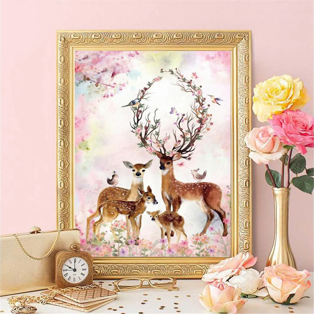 Алмазная живопись HUACAN с квадратными стразы s олень цветок Алмазная мозаика вышивка животные Стразы картины