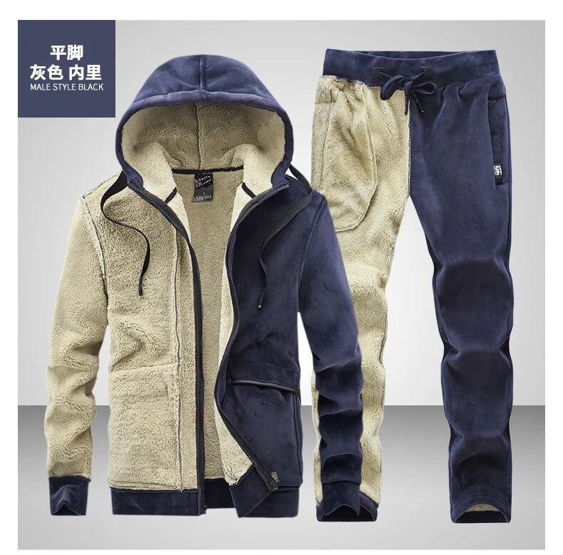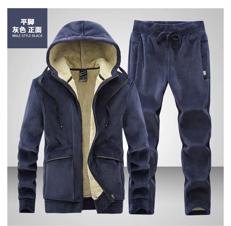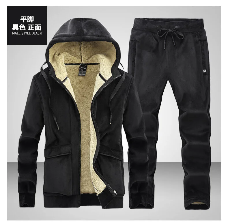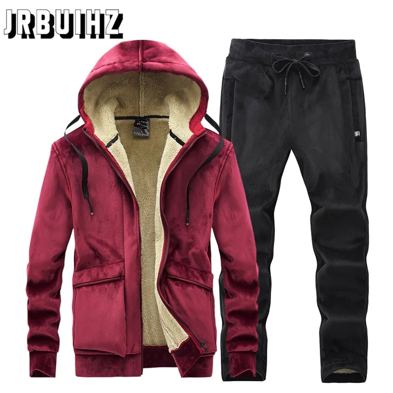Новинка 2021, спортивный костюм для мужчин, теплый спортивный костюм, зимний бархатный толстый комплект из двух предметов, Мужской флисовый спортивный костюм, пиджак + брюки, размер 7XL 8XL