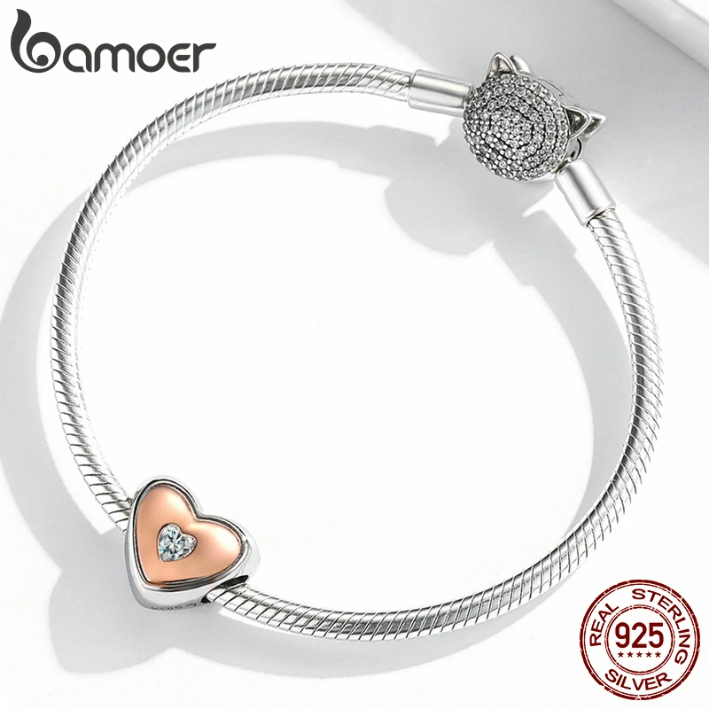 Женский браслет Bamoer, классический браслет из 100% стерлингового серебра 925 пробы с сердечками, с покрытием из розового золота Exqusite