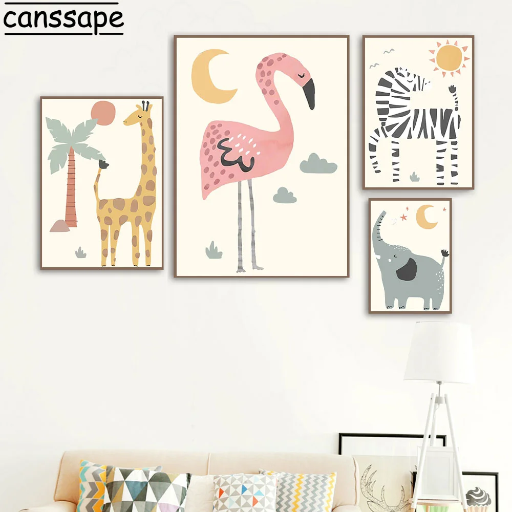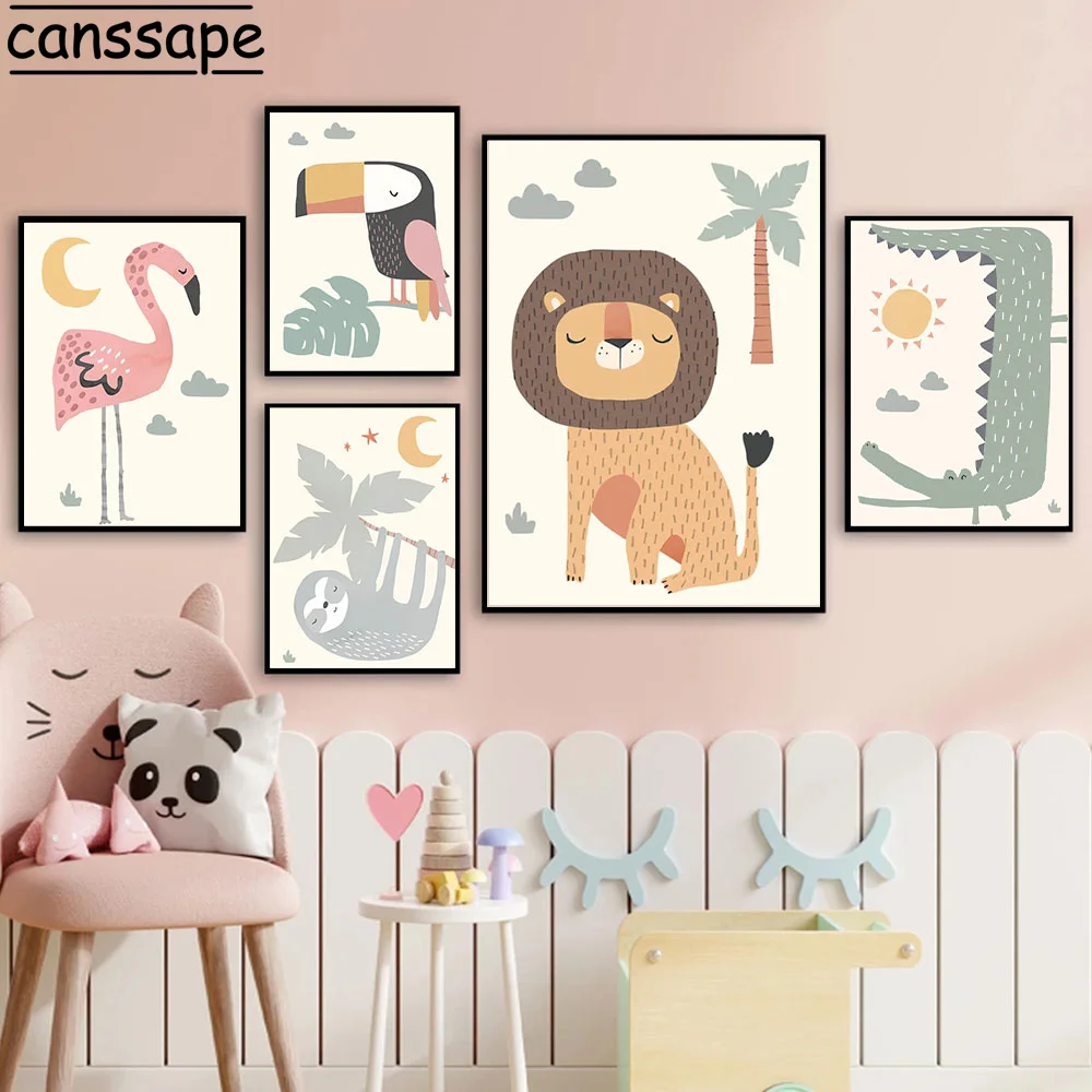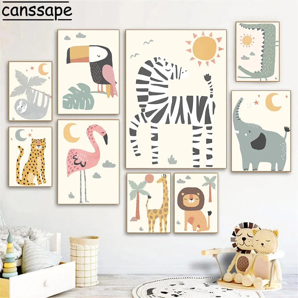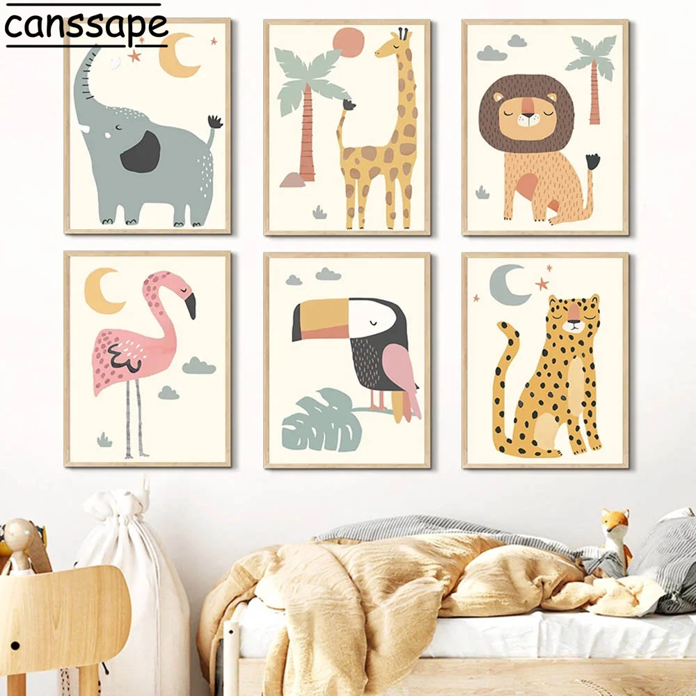 Постеры на холсте со слоном для детской комнаты, постеры на стену с изображением Льва, животные в джунглях, картина на стену в скандинавском стиле, декор для детской комнаты