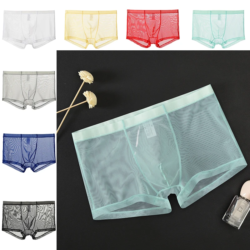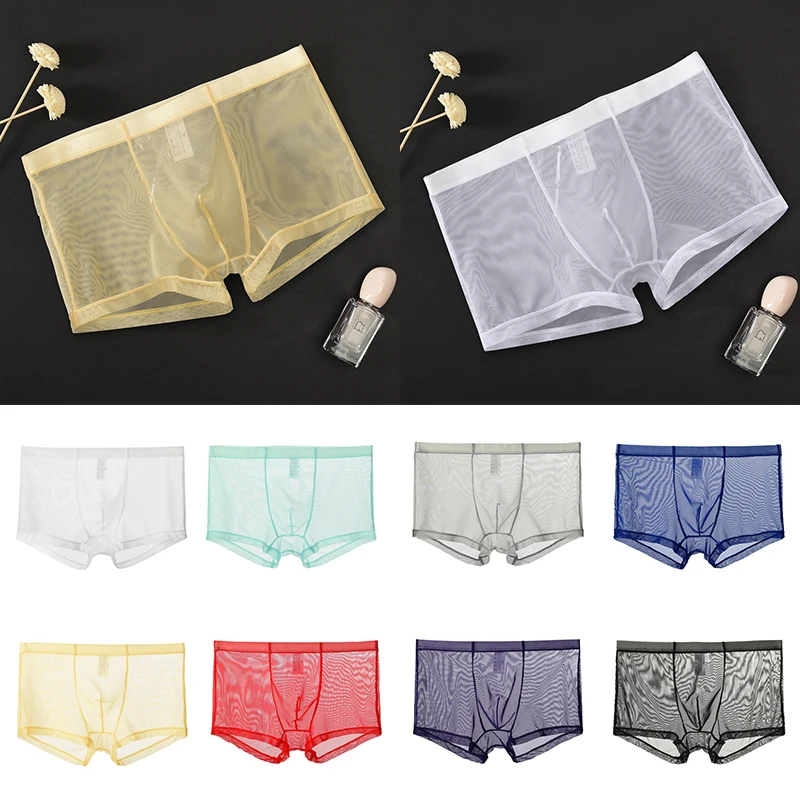 Мужское сексуальное бесшовное нижнее белье, мужские Ультра-тонкие прозрачные трусы-боксеры, мужские сетчатые трусы со средней посадкой, мужские трусы-боксеры, шорты