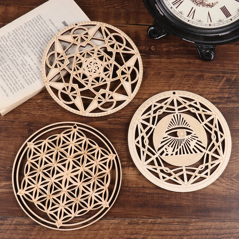 Настенная картина с изображением священной геометрии, деревянный знак, подвесное искусство, Хрустальная сетка, медитация, чакра, цветок жизни, лазерная вырезка, подставка, коврик, настенное украшение