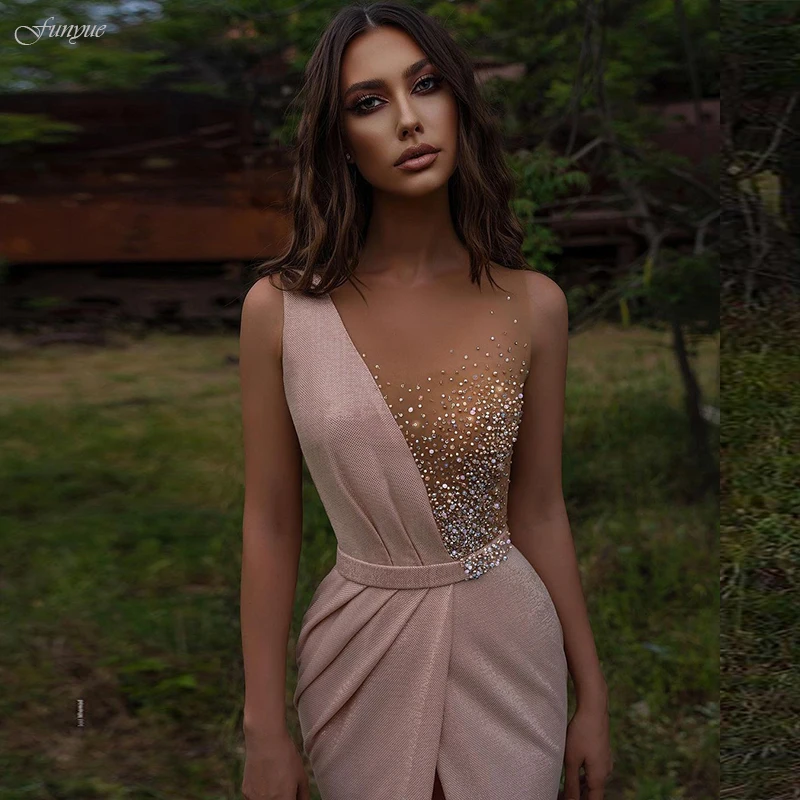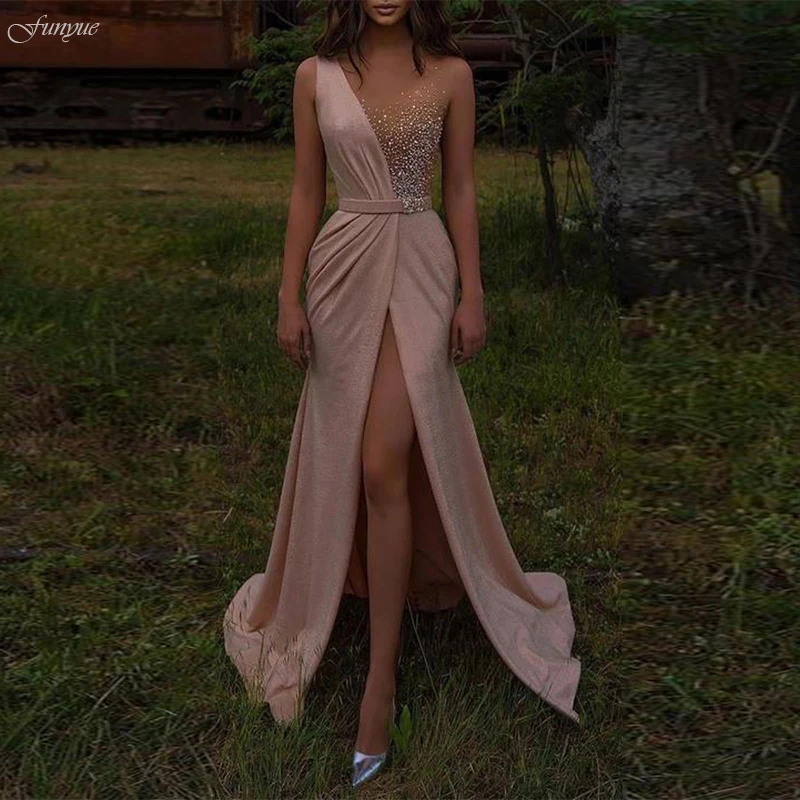 Бежевое розовое вечернее платье-русалка, последняя мода 2022 года, бусины, Дубай, Саудовская Аравия, женское привлекательное официальное платье с разрезом для вечеринки
