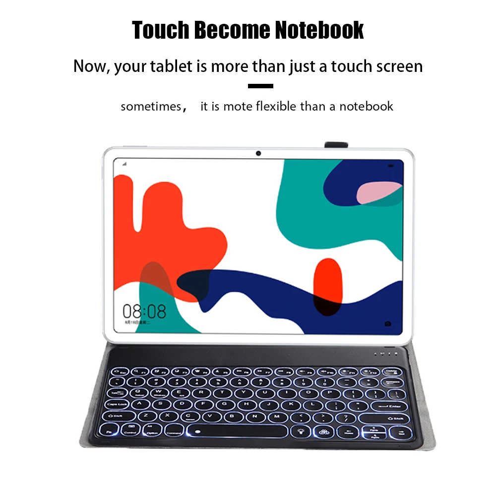 Чехол для Huawei MatePad 10,4 дюйма с подсветкой, Беспроводная Bluetooth клавиатура с круглым корпусом для Honor Pad V6 2020, кожаный чехол для планшета