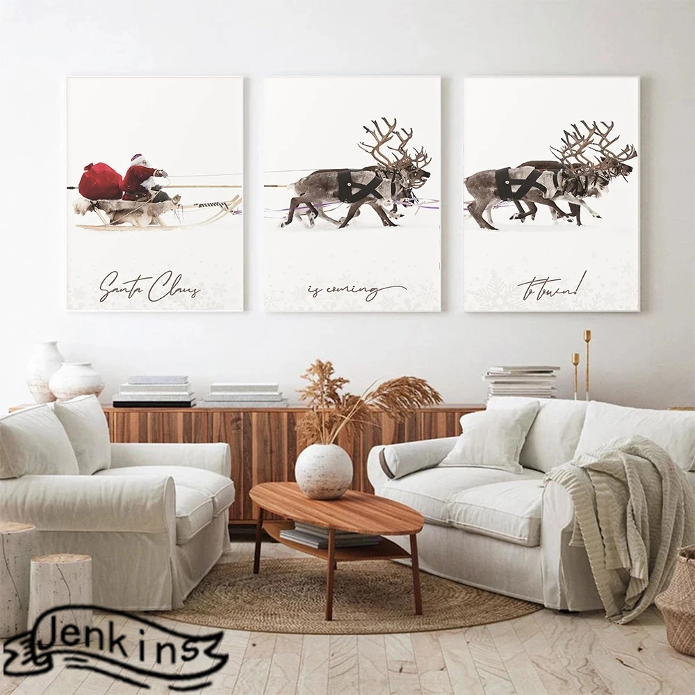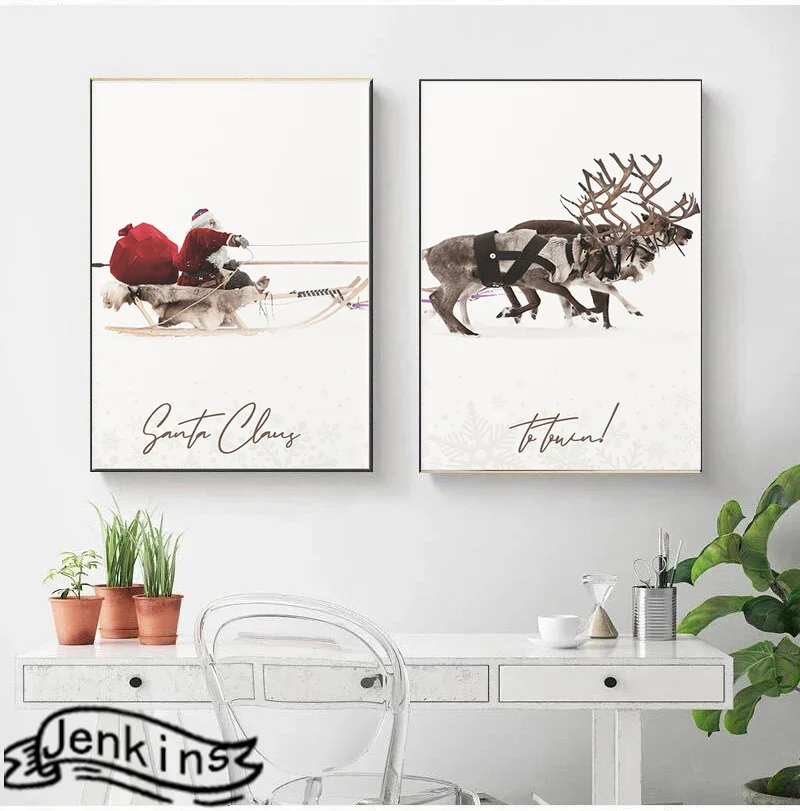 Подарочный Рождественский постер с изображением снега, Санта-Клауса, лося, настенная Картина на холсте, Современная Настенная картина для гостиной, украшение для дома