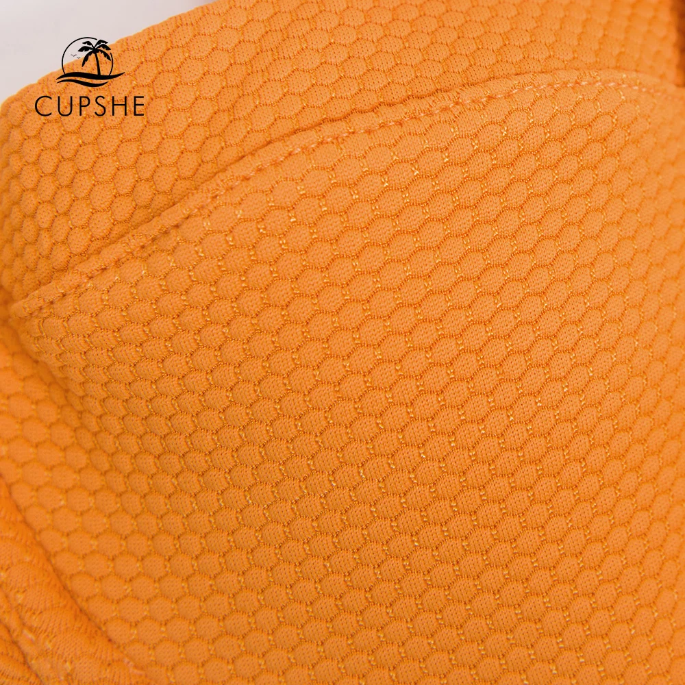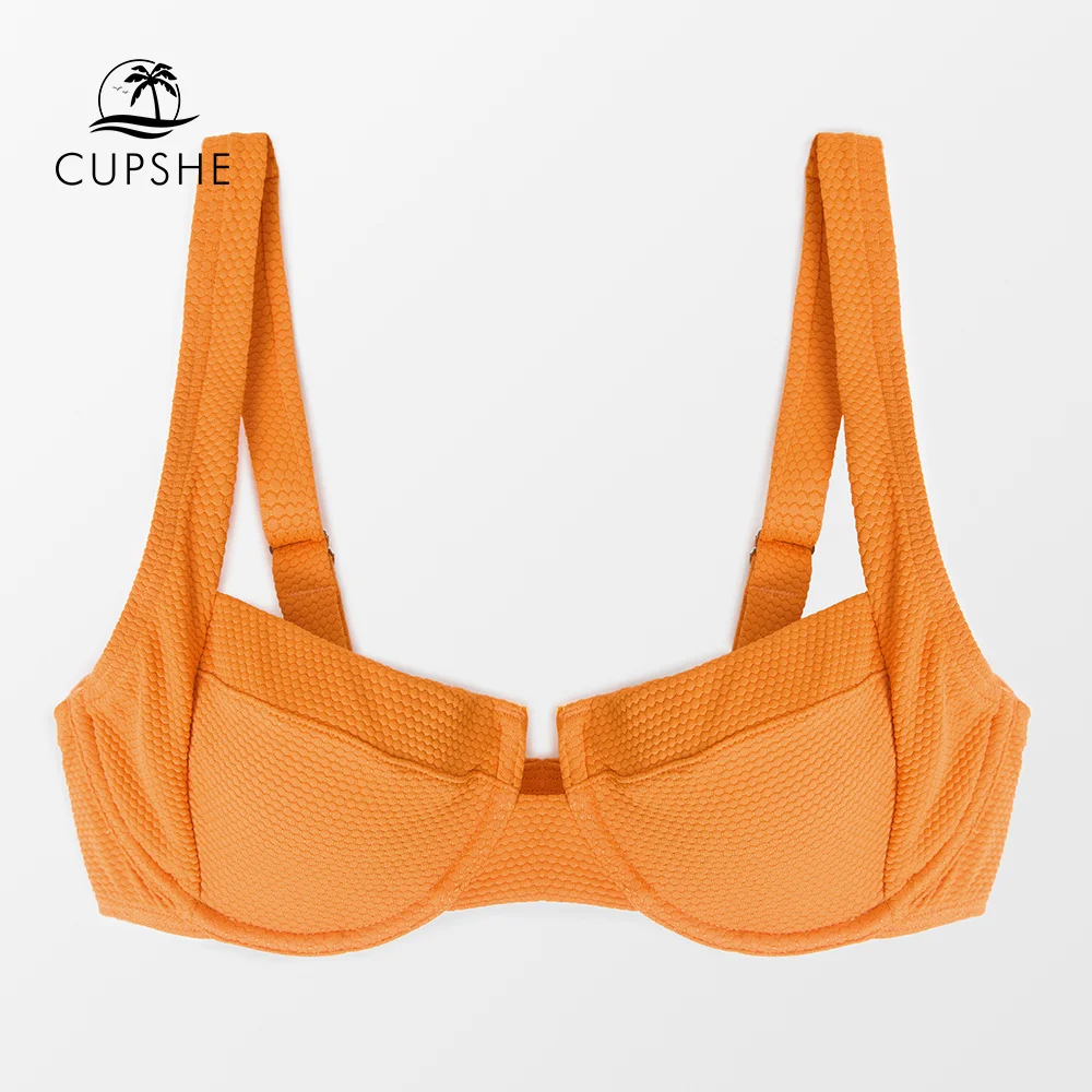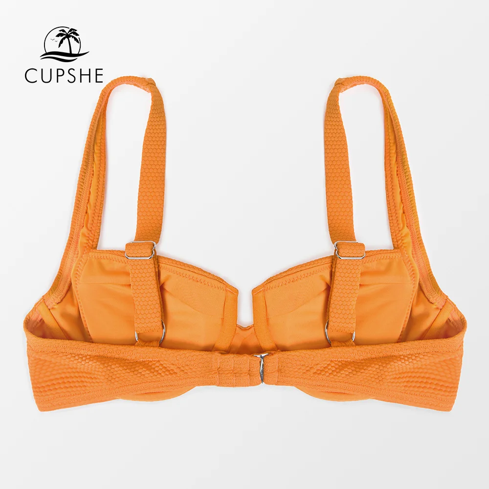 CUPSHE бикини на косточках, пуш-ап, Топ для женщин, сексуальный, текстурированный, оранжевый, с крючками сзади, бюстгальтер, топ, 2022, для девушек, Раздельный купальник, Купальный бюстгальтер, Топ