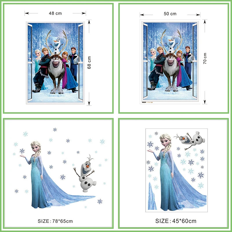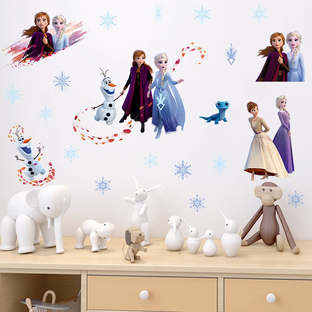 Мультяшные наклейки на стену сделай сам, холодная принцесса, Эльза, Анна, для девочек, детской комнаты, фоновое украшение, съемный постер для детской спальни, наклейка