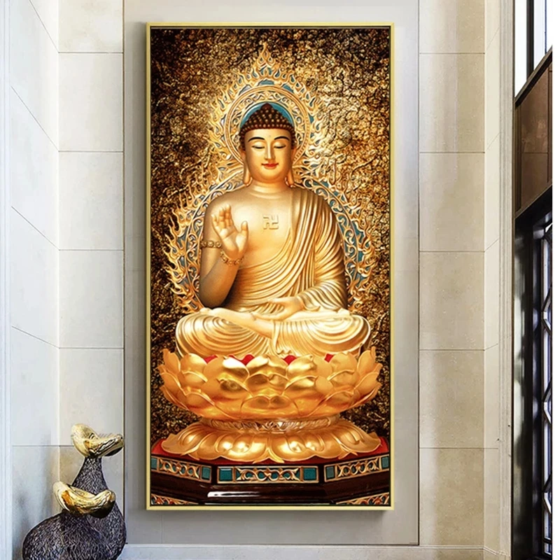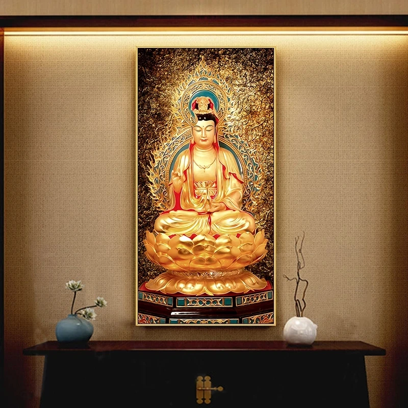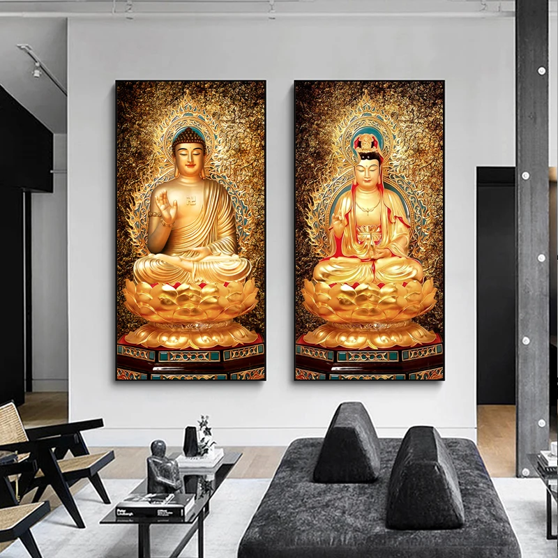 Религия, Золотая фотосессия, настенный художественный плакат, печать, буддизм большого размера для украшения зала Будды, картина