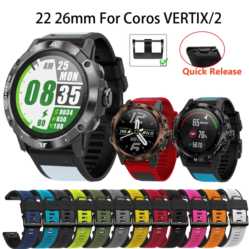 Ремешок для наручных часов, быстросъемный силиконовый браслет для Coros VERTIXCoros VERTIX 2, 22 26 мм
