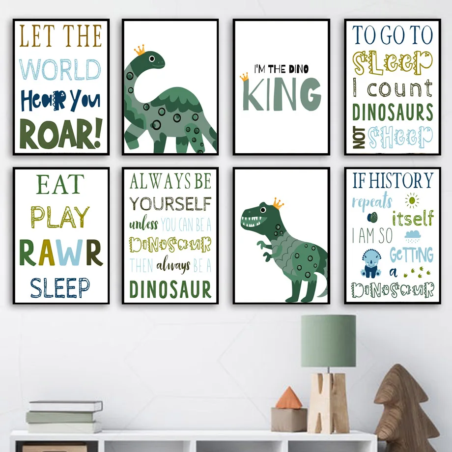 Скандинавский постер динозавр треки Детские правила Динозавр мальчик детский настенный художественный Принт Холст Картина настенные картины детская комната школьный Декор