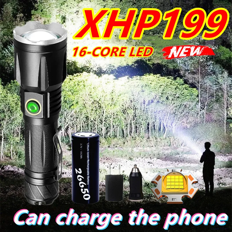 Обновленная мощная светодиодная вспышка XHP199, яркий фонарь высокой мощности 26650 XHP90 светильник заряжаемая тактическая вспышка, ручная Usb-лампа