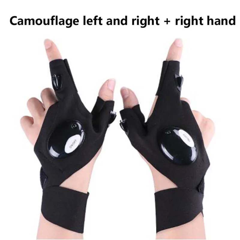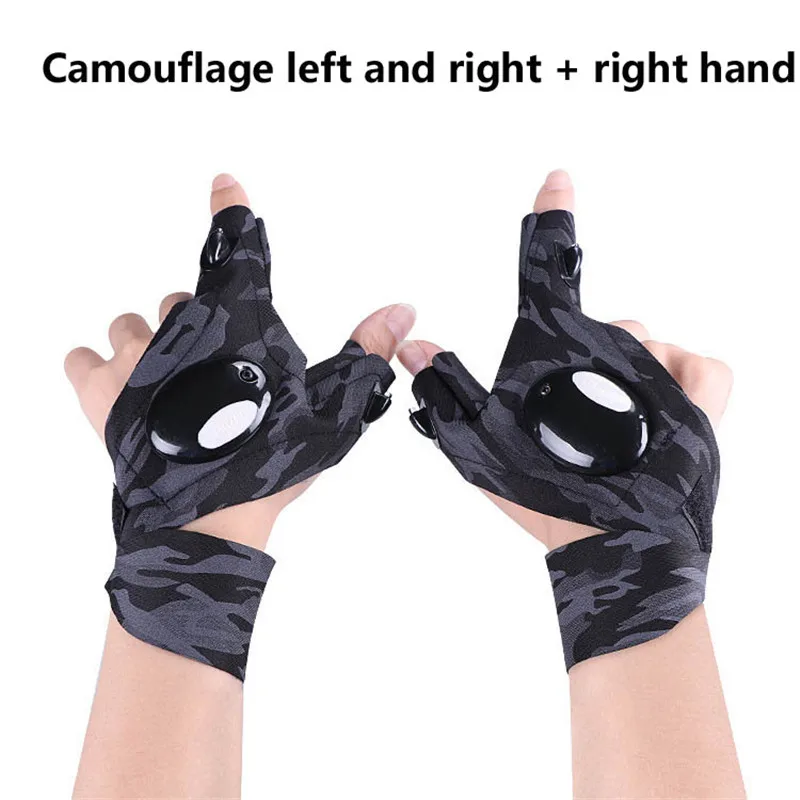 Перчатки для рыбалки на открытом воздухе, волшебный ремешок, без пальцев, светодиодный фонарь, чехол для выживания, кемпинга, пешего туризма, велоспорта, спасательные перчатки