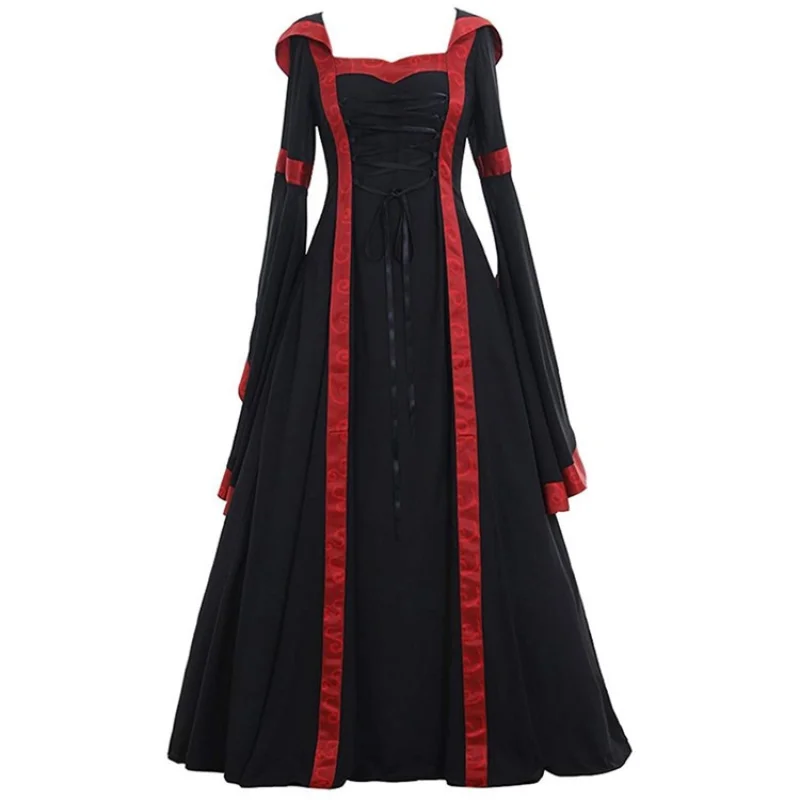 Женское длинное платье с капюшоном, средневековое платье эпохи Возр...