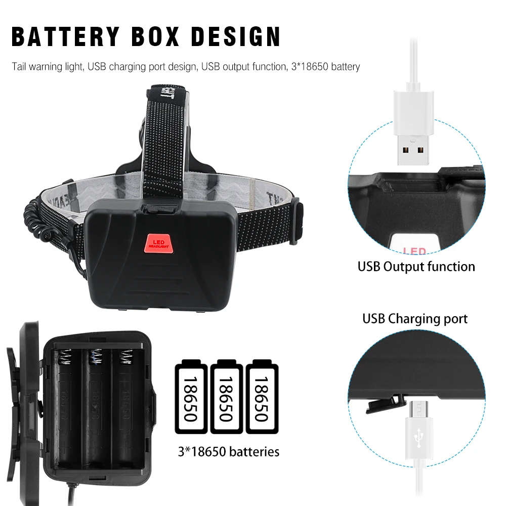 ★3 режима освещения. Высокий светильник-низкий светильник-стробоскоп, доступно больше режимов.★Водонепроницаемый налобный фонарь: супер яркий водонепроницаемый налобный фонарь, большой светодиодный срок службы может достигать 100000 часов.★Зарядка порта Micro USB: экстренные потребности, порт Micro USB может поддерживать различные методы зарядки.★Масштабируемый и съемный: стиль фары ночного видения является съемным и масштабируемым. Который подходит для кемпинга, пеших прогулок, езды на велосипеде, скалолазания и других видов активного отдыха.★Как внешний аккумулятор: общий выходной порт USB, который может продлить время работы батареи мобильный телефон и другие электроники в чрезвычайных ситуациях.