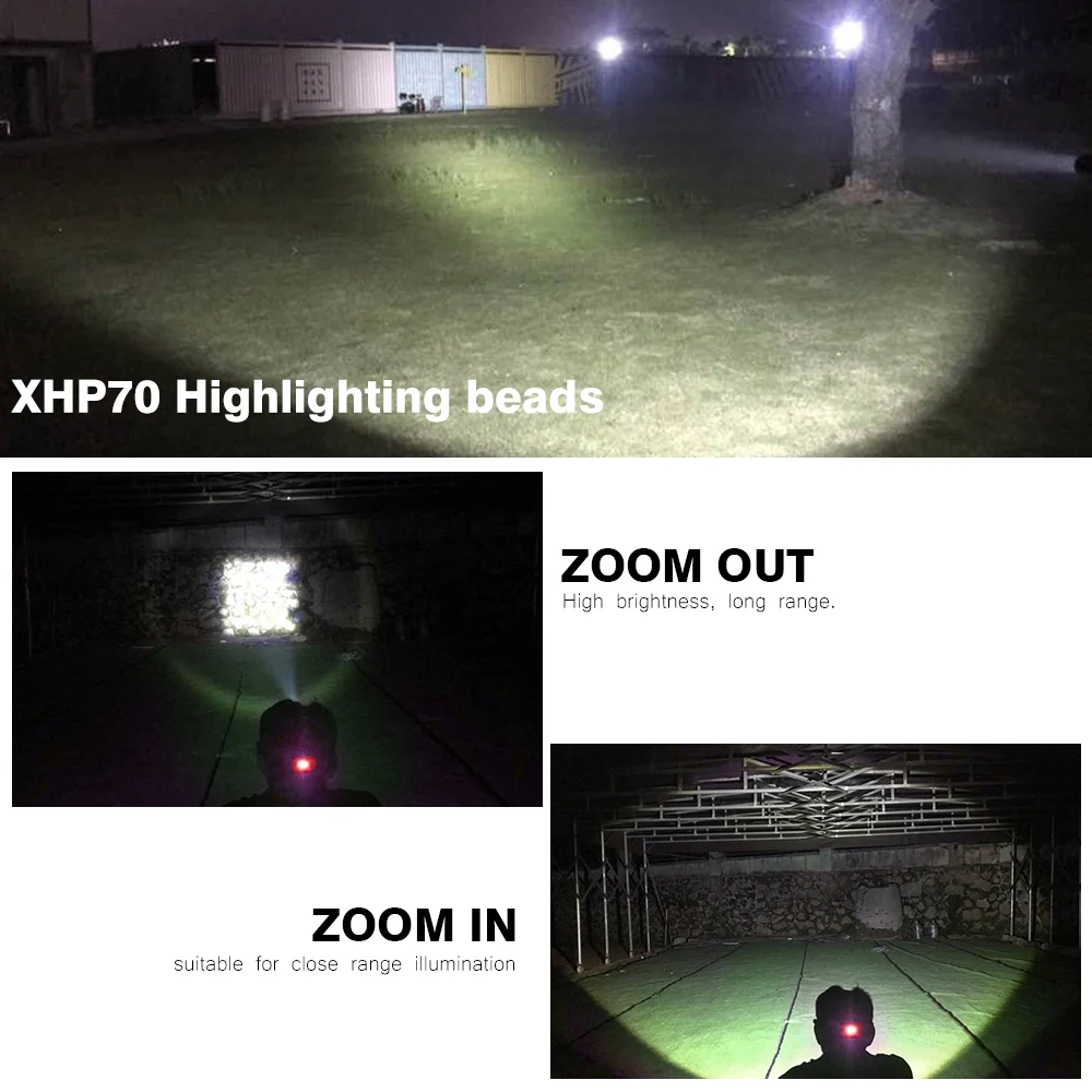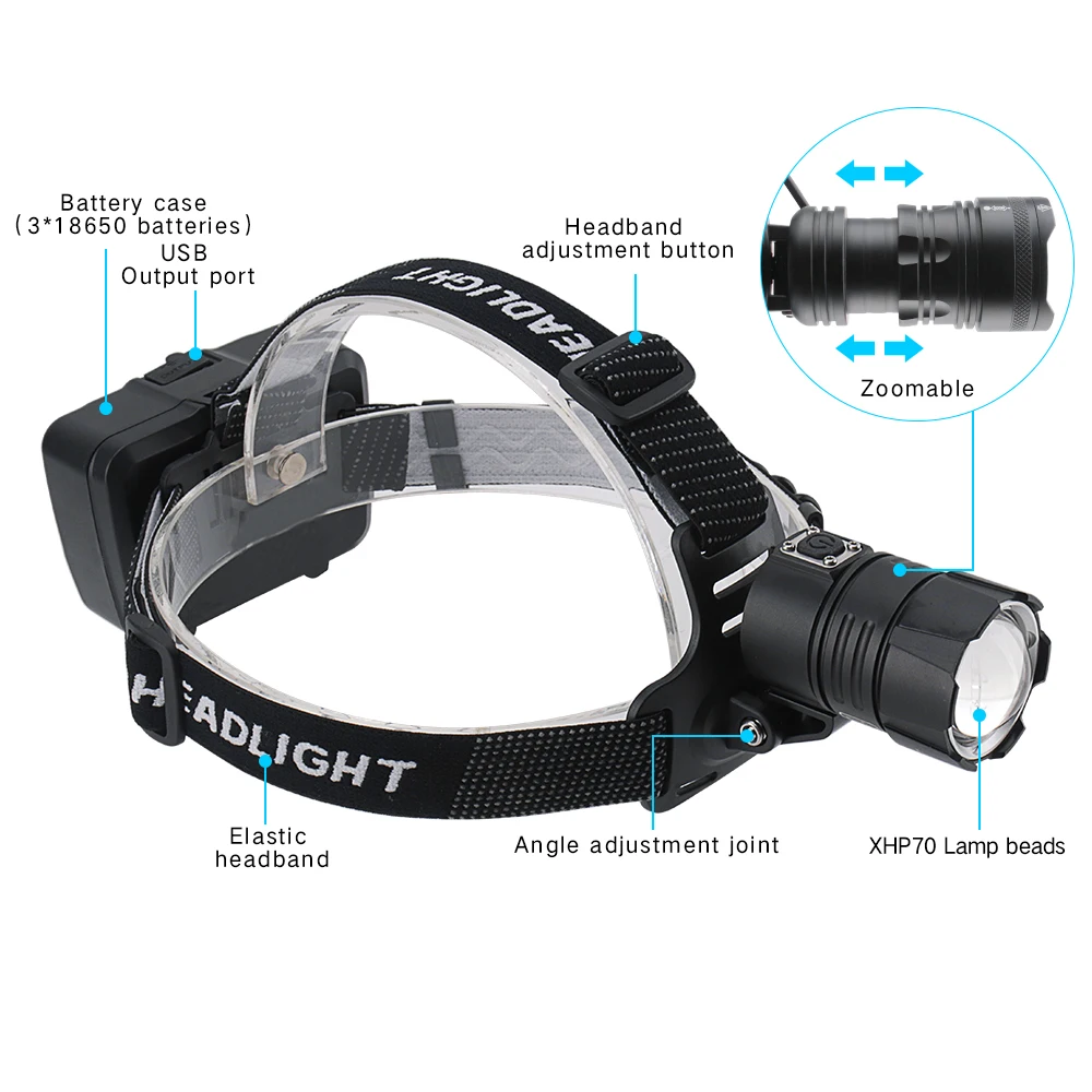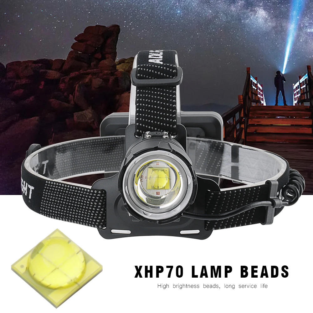 1*3 светильник режим ing: высокий светильник -- низкий светильник -- стробоскоп2 * Уровень водонепроницаемости: IPX4, Ежедневный Водонепроницаемый, непромокаемый головной светильник3 * Материал: головная лампа из алюминиевого сплава + Эластичная головная повязка4 * Цветовая температура: 6000K5 * светодиодный лампы: XHP70.2 светодиодный6 * Время доставки: 8 часов7 * Время работы: 4-6 часов (в зависимости от емкости аккумулятора)
