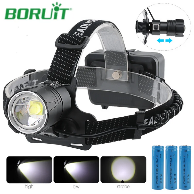Вариант A:1 * BORUiT светодиодный налобный фонарь1 * USB кабельВариант B:1 * BORUiT светодиодный налобный фонарь3*18650 батареи1 * USB кабель