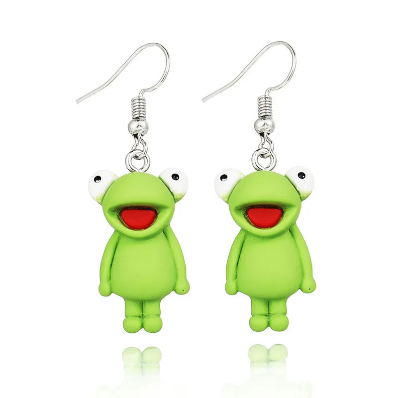 Серьги-подвески с зеленой лягушкой для женщин, милые аксессуары, ювелирные изделия, розовая лягушка, простые маленькие Висячие серьги, трендовые товары, 2021