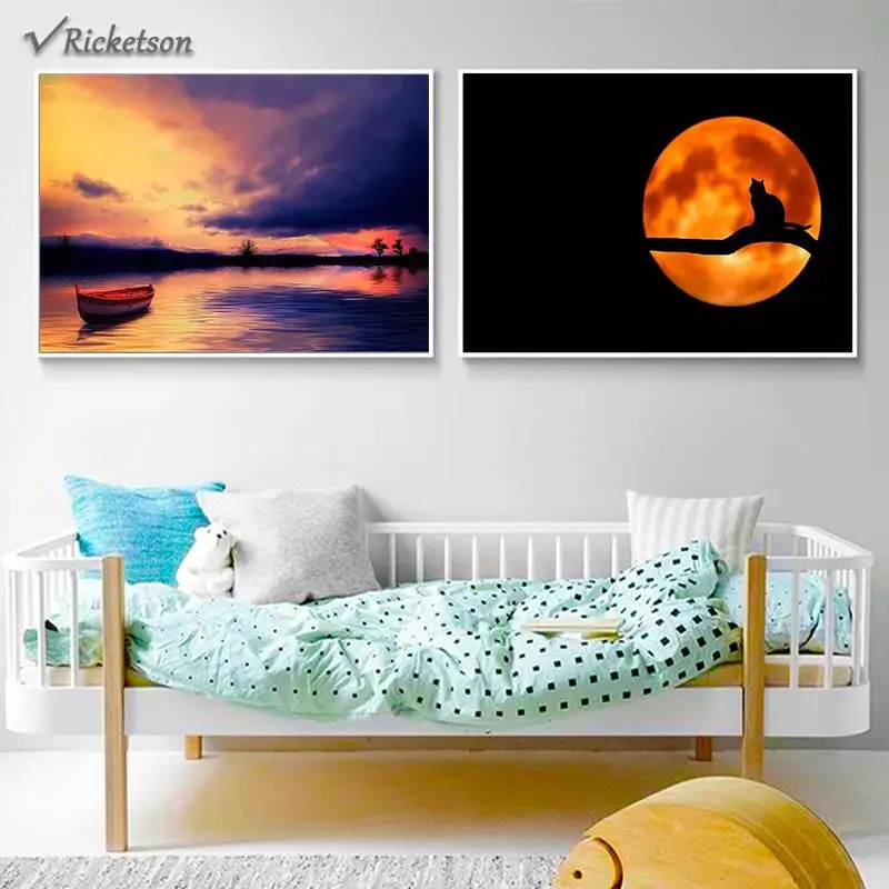 Полнолунный настенный плакат и принты, холст, живопись, луна, пейза...