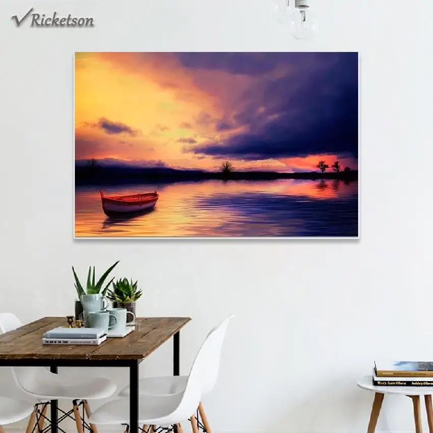 Абстрактная картина со спокойным озером, пейзаж, Желтая Лодка, Наст...