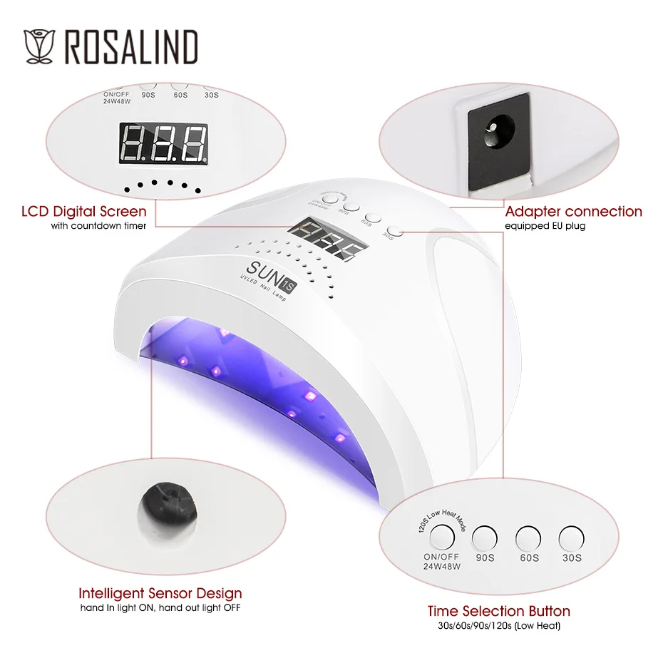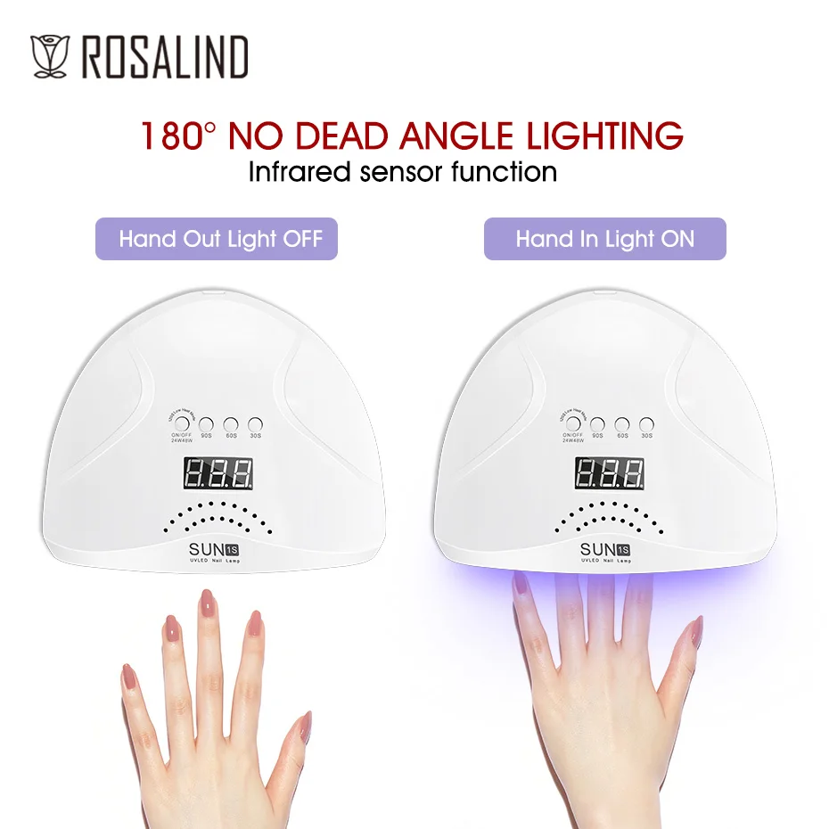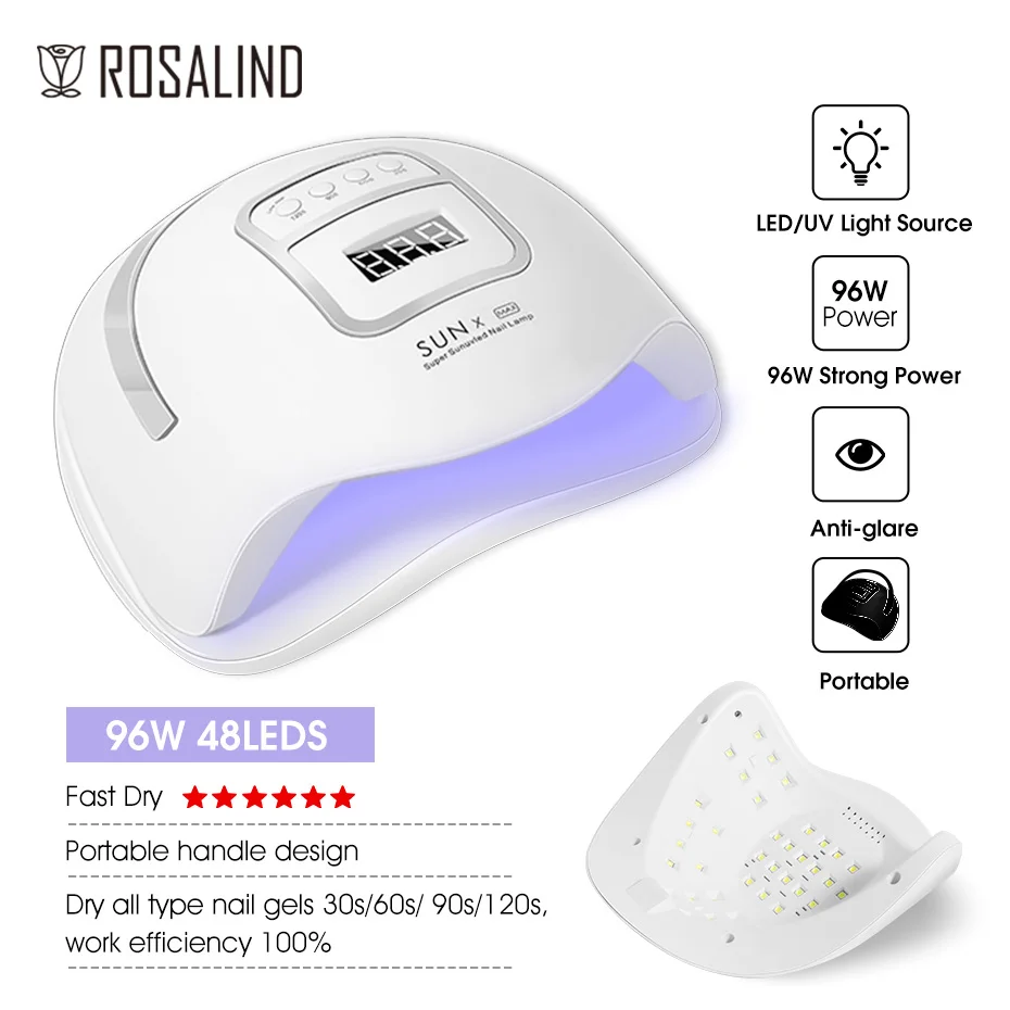 Съемная машинка для маникюра ROSALIND, 96 Вт, УФ-лампа для отверждения гель-лака, таймер, автоматический датчик, оборудование для дизайна ногтей