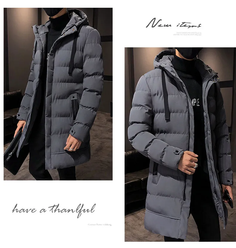 Мужская зимняя куртка, длинная теплая Толстая парка с капюшоном, Мужская зимняя верхняя одежда, Классическая ветрозащитная парка с карманами для мужчин