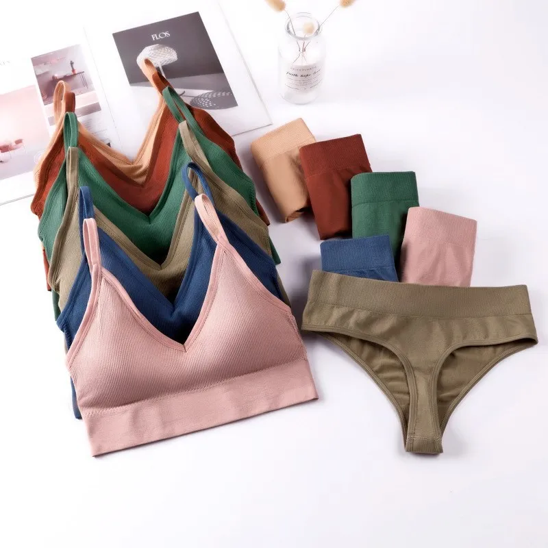 Лидер продаж, бесшовный Женский жилет с V-образным вырезом, мягкое однотонное нижнее белье, укороченный топ, спортивный бюстгальтер с накладкой для груди, G-стринги Цветное белье Бюстгальтер с нагрудником