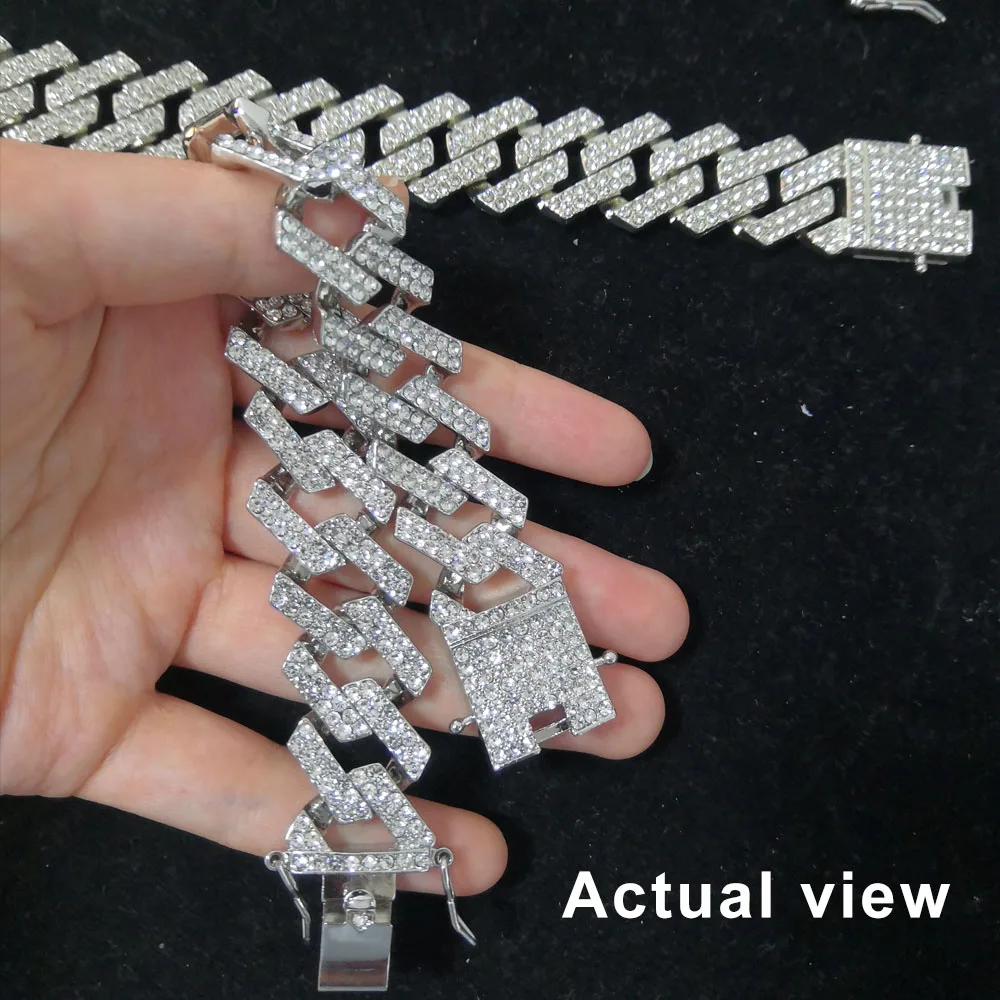 Мужская цепочка 20 мм, ожерелье в стиле хип-хоп, кубинская цепь с ромбовидным покрытием, мужские украшения