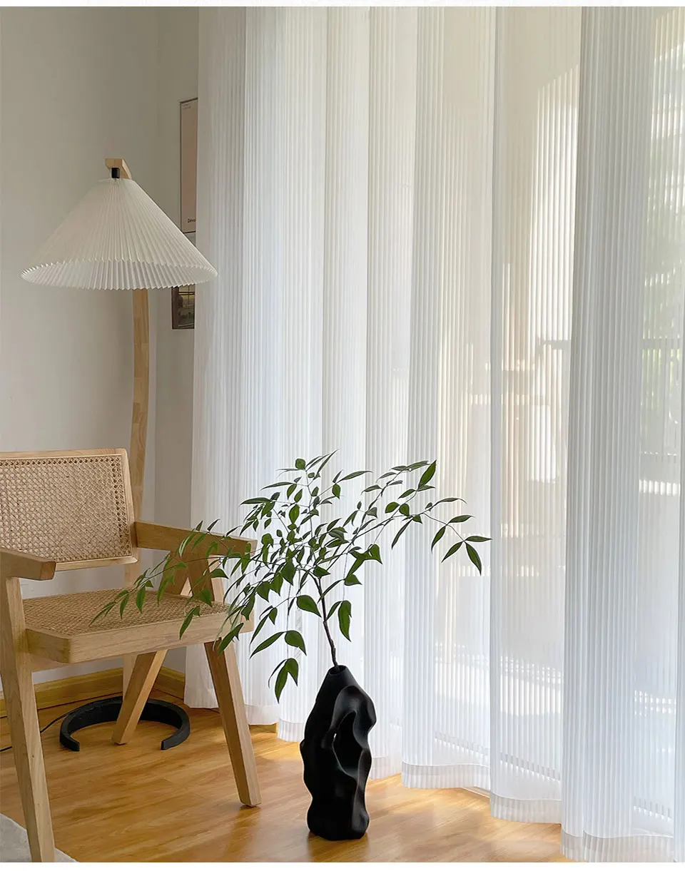 Белая Тюлевая занавеска в полоску для гостиной в японском стиле, ль...