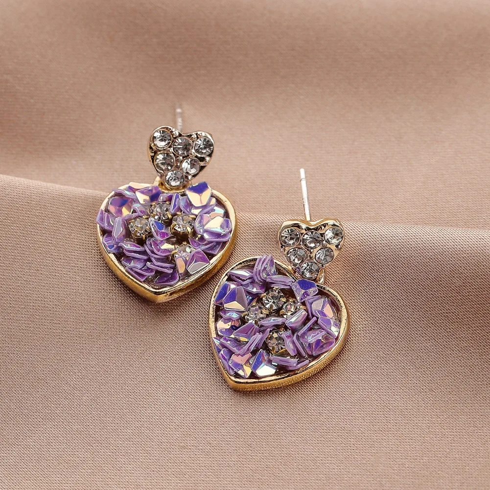 Женские серьги с сердцем, серые, с кристаллами, серьги-подвески, 2020