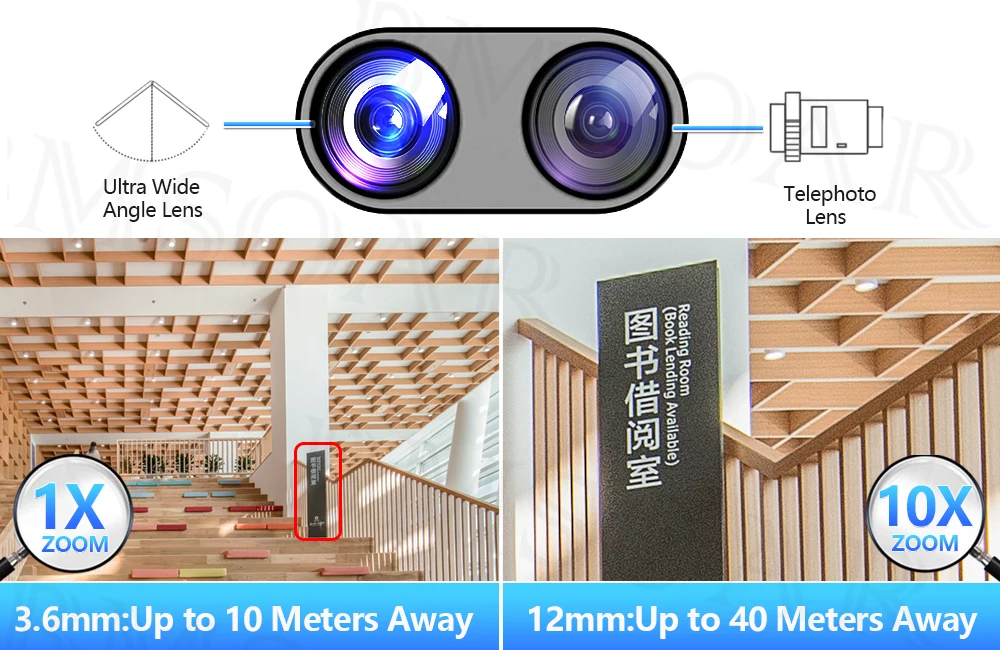 Вы можете использовать обновленную версию камеры wifi с двумя объективами, которая может достичь эффекта 10-кратного цифрового зума и видеть большие расстояния до 40 м.