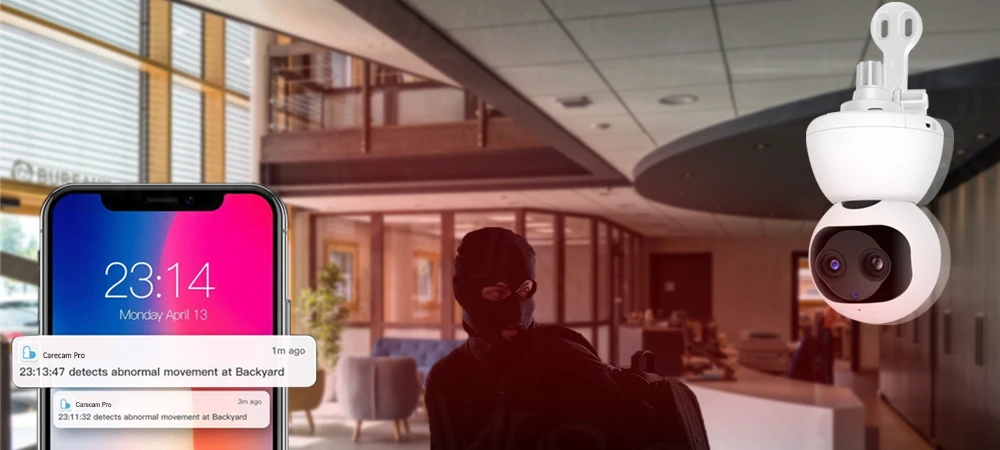 Вы можете удаленно получать и нажимать сигнал тревоги через ваш мобильный телефон, когда находитесь вдали вовремя. Вы также можете использовать звуковой сигнал и светильник устройства, чтобы отпугнуть воров. Защитите свой дом!