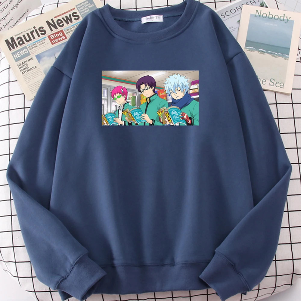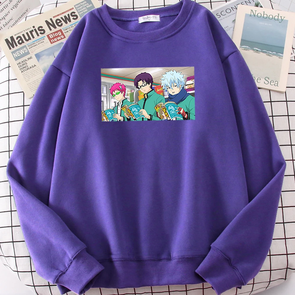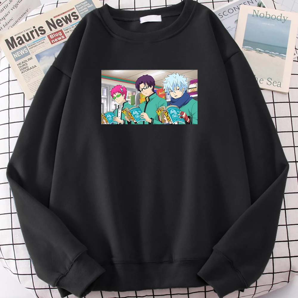 Мужские толстовки с аниме-принтом Saiki Kusuo, с рисунком из мультфильма, мужская толстовка с круглым вырезом, лаконичная Толстовка большого размера, теплый флисовый женский свитер