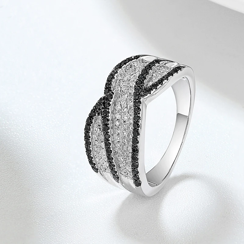 Женское серебряное кольцо Laya, из серебра 925 пробы с черной эмаль...