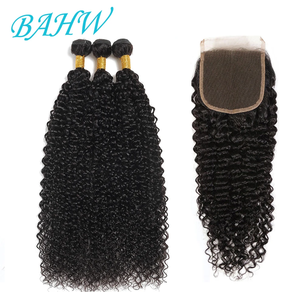 BAHW бразильские кудрявые пряди волос с застежкой, 3 пряди человеческих волос с застежкой, волосы без повреждений, пупряди с застежкой 30 дюймов